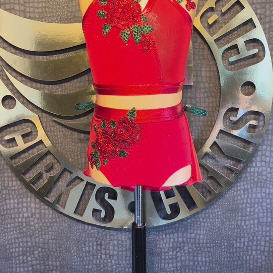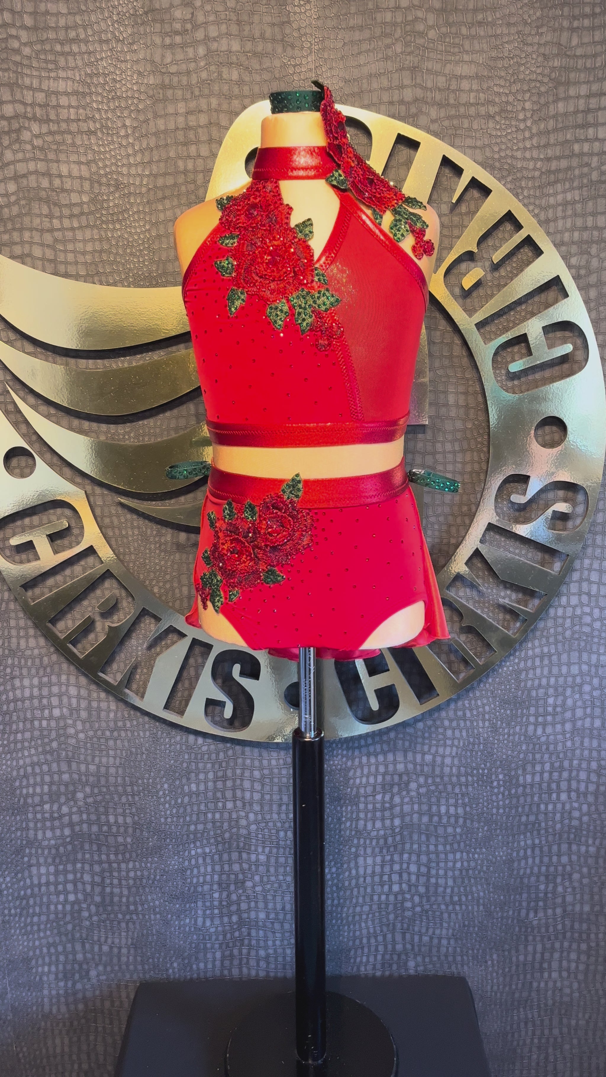 Age 12-13 Red Lyrical Stage Costume With Rose Appliqué Details